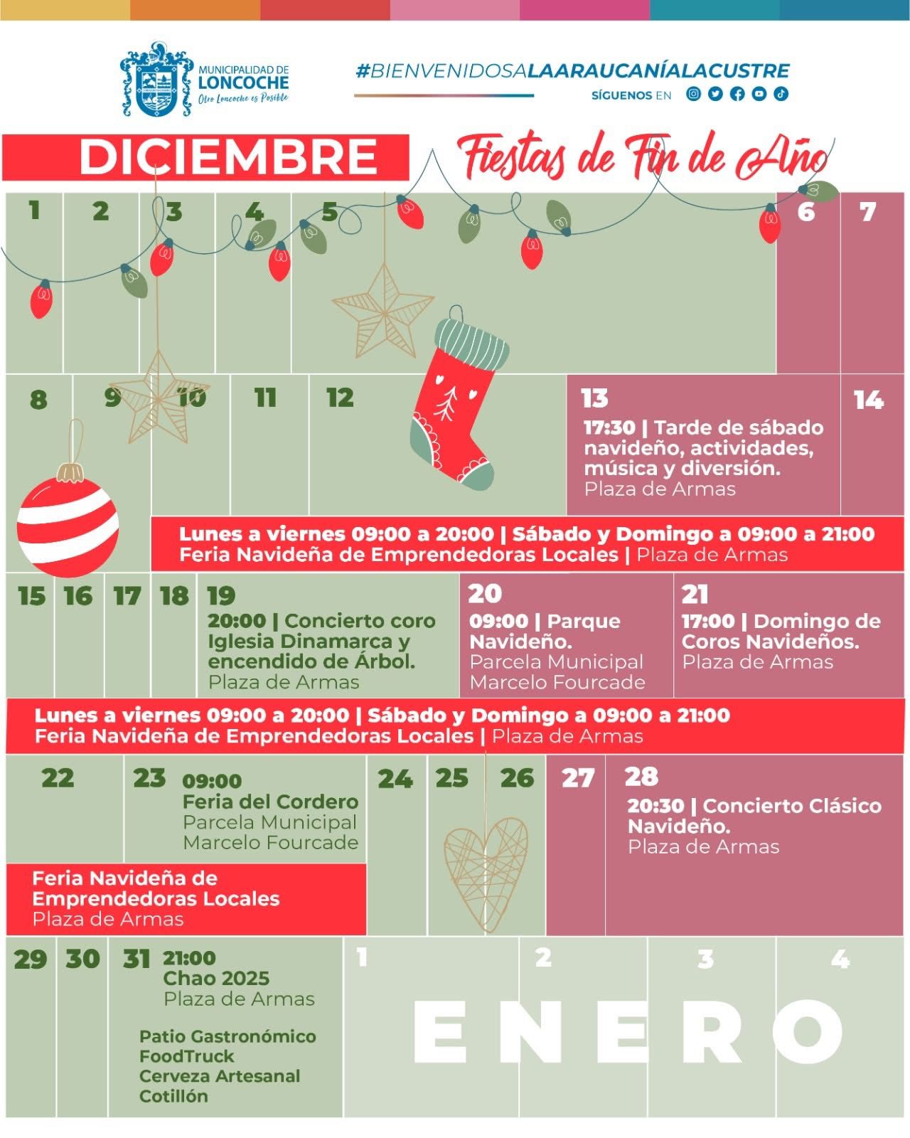 La Municipalidad de Loncoche dio a conocer su calendario de actividades para diciembre, mes que…