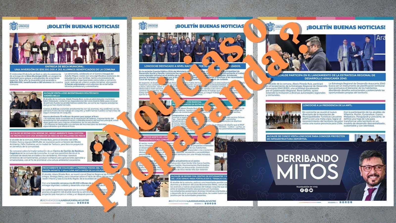 Loncoche, julio de 2025 – A través de un llamativo boletín titulado “¡Buenas Noticias!”, la Municipalidad de Loncoche promociona una serie de actividades encabezadas por el alcalde Alexis Pineda. Desde la entrega de becas, visitas a liceos, reuniones con autoridades regionales y promesas de obras futuras, el documento busca destacar la gestión municipal en tono positivo.
