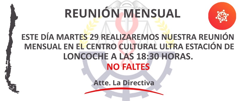 Loncoche, julio de 2025 – La Cámara de Comercio de Loncoche invita cordialmente a todas y todos sus socios a participar de su reunión mensual, a realizarse este martes 29 de julio a las 18:30 horas en el Centro Cultural Ultra Estación de la comuna.